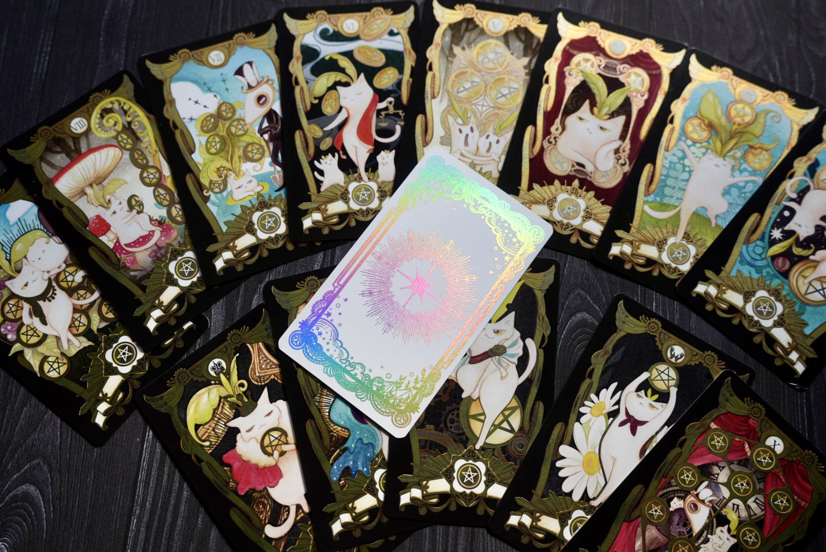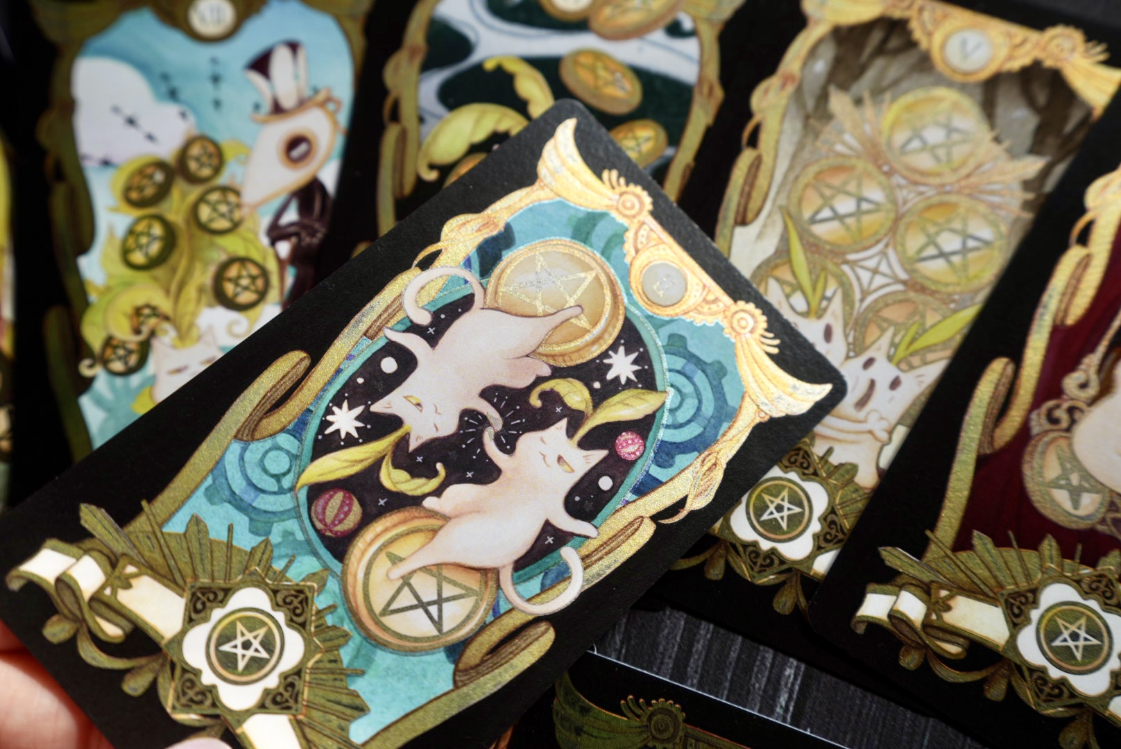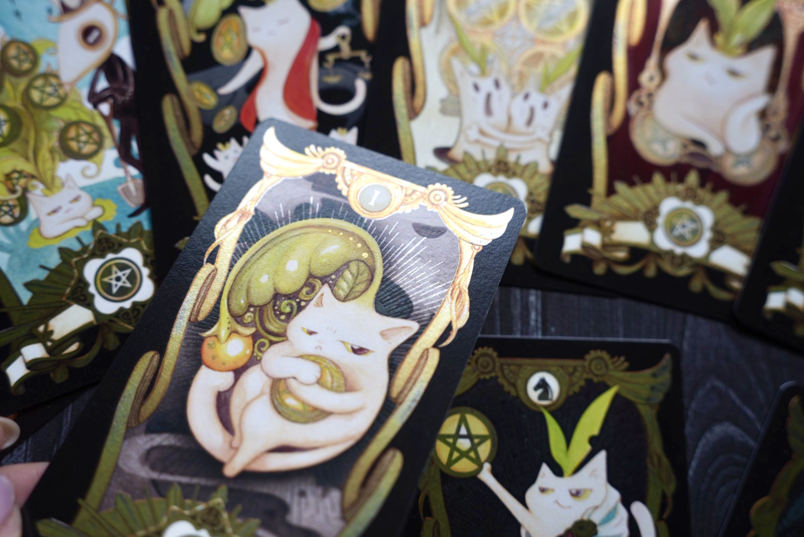 捏嘴巴手繪插畫,結合原創角色喵德拉系列之錢幣塔羅牌