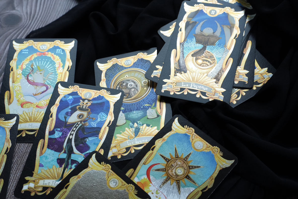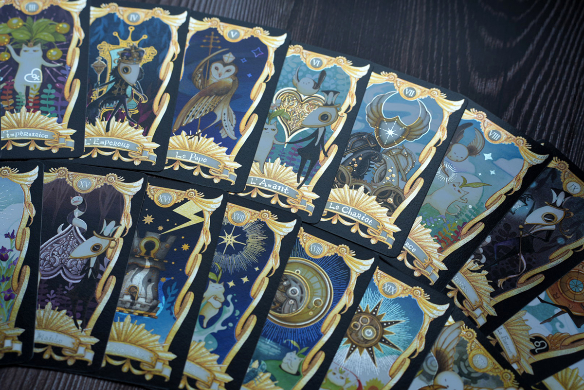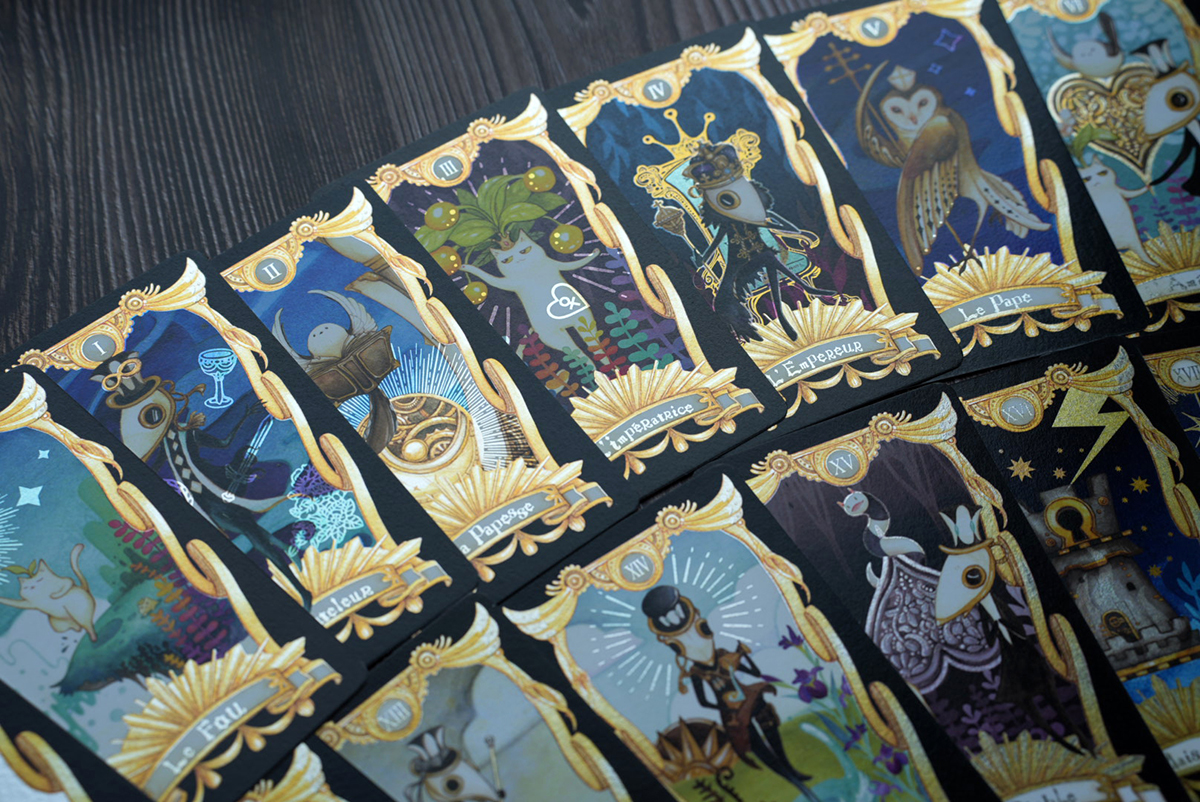 捏嘴巴手繪插畫,結合原創角色喵德拉系列之塔羅牌